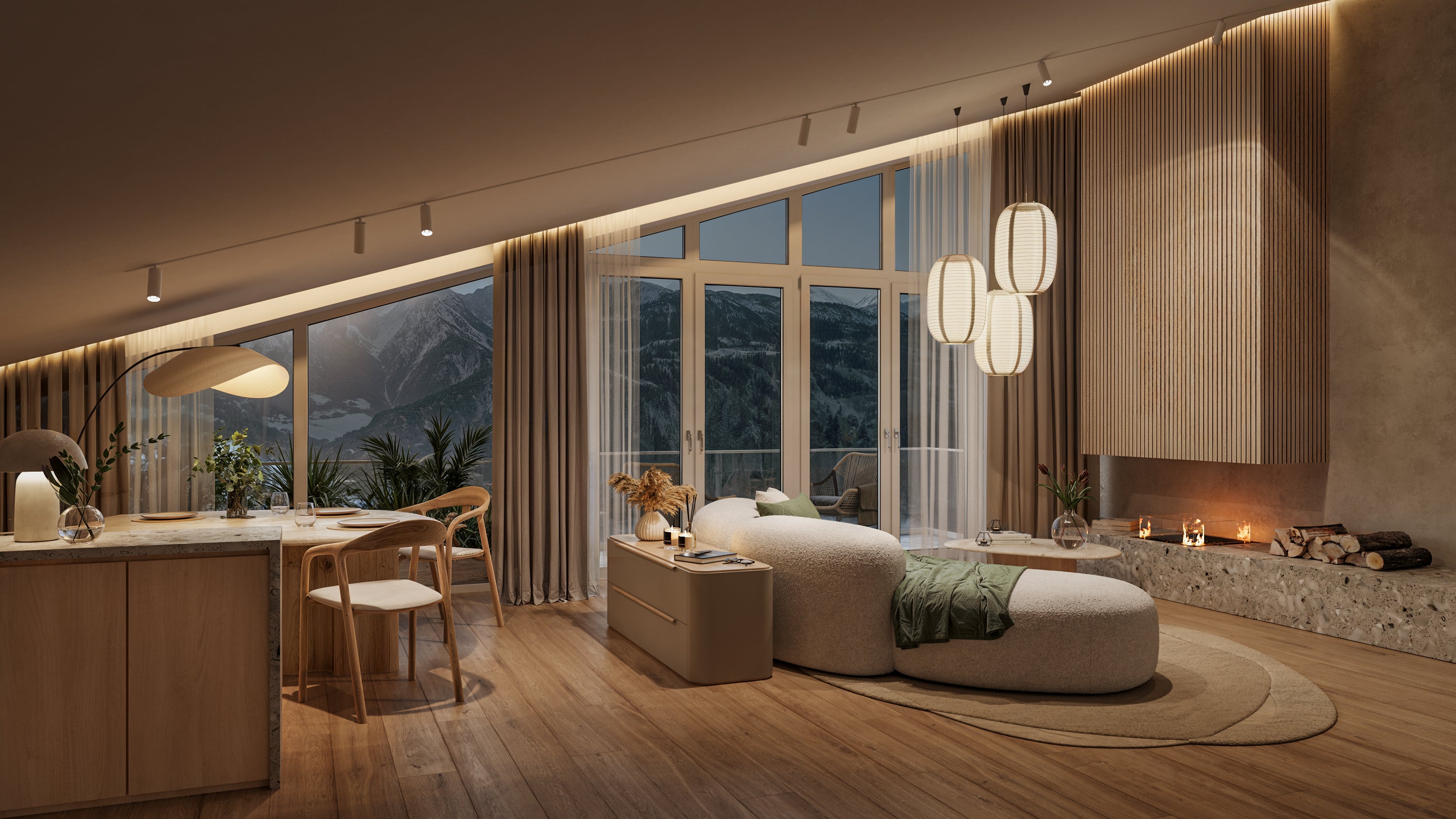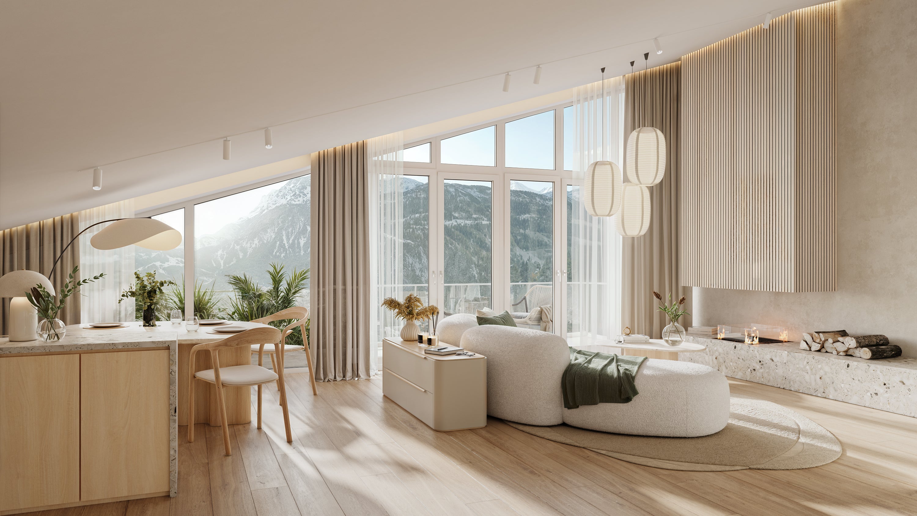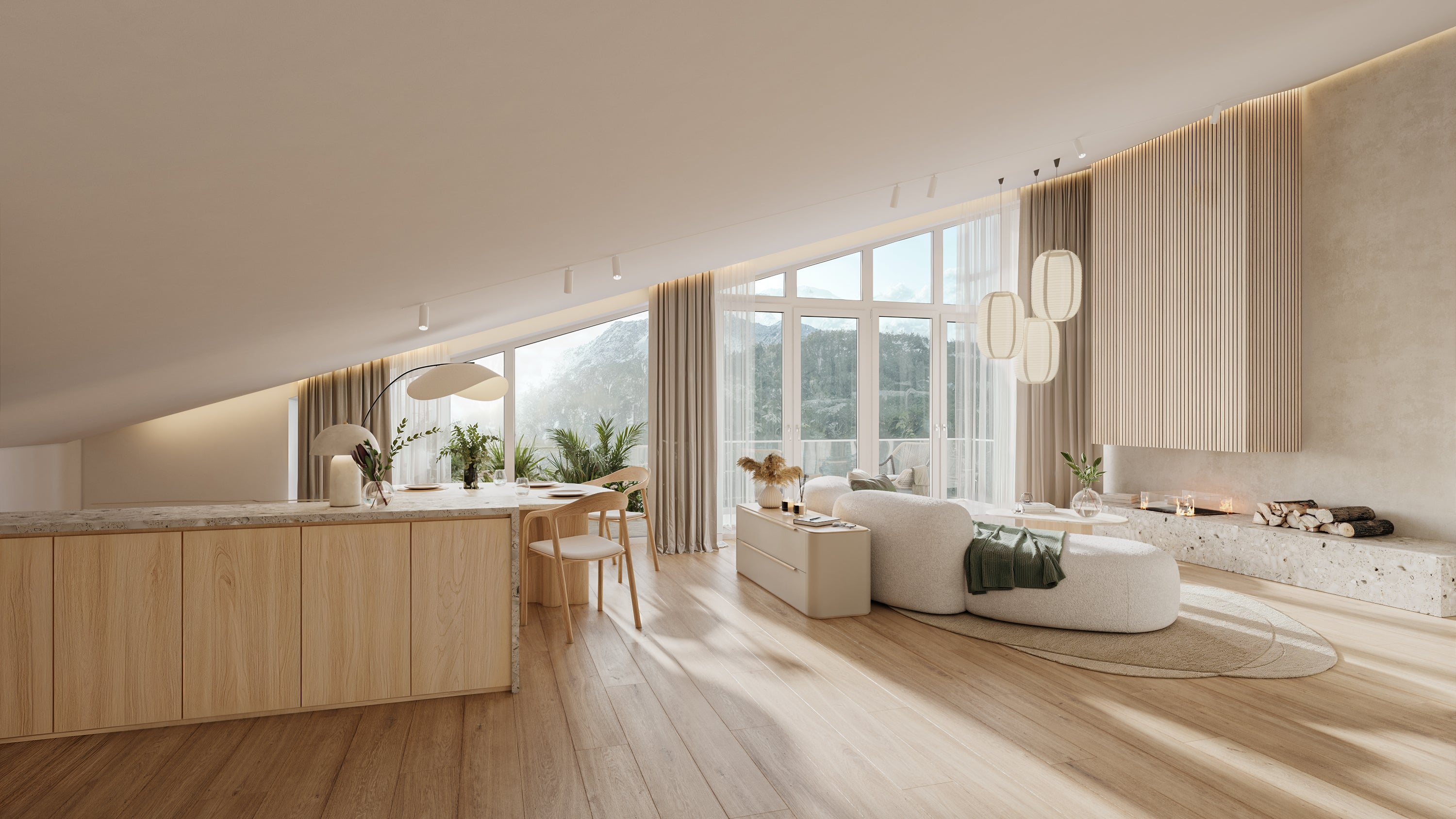 Gegebenheiten: Für die bessere Vorstellungskraft der Dachschräge wird eine Visualisierung benötigt. Zusätzliche Anforderung ist der realitätsgetreue Ausblick auf die Berge.