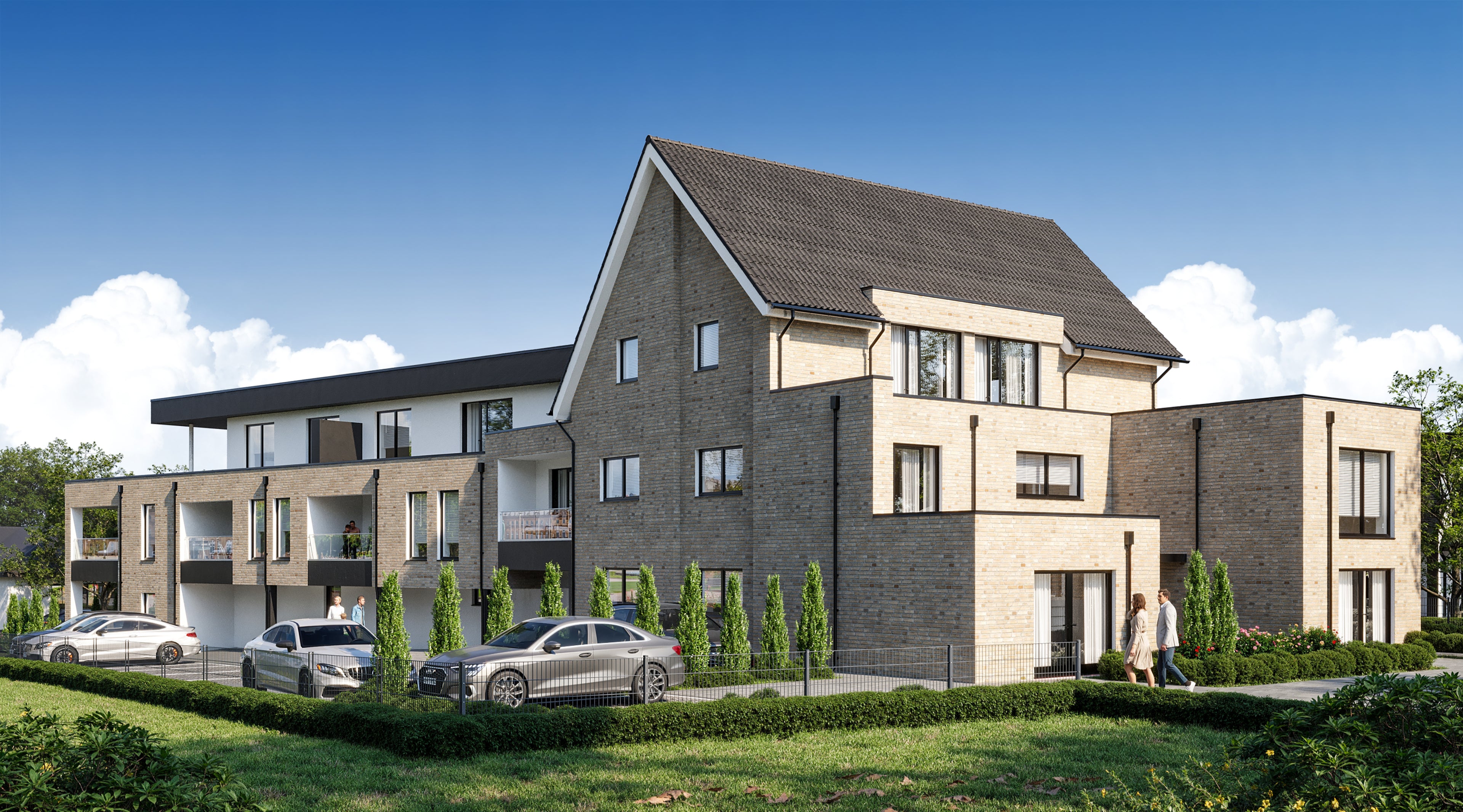 Resultat: Gemäß den Vorgaben, sowie einem einfachen 3D Modell des Architekten sind 3 fotorealistische Außenansichten für die erfolgreiche Vermarktung entstanden.
